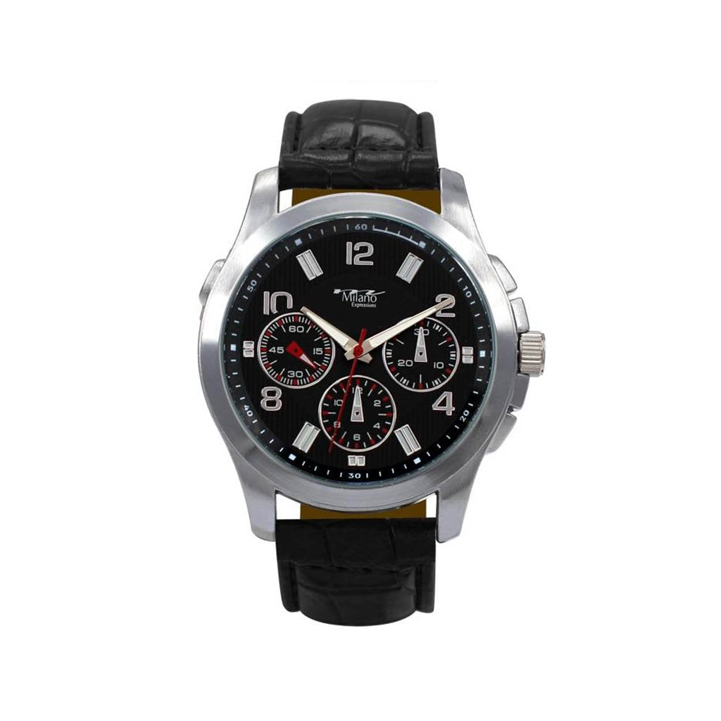 Hodinky M Milano Expressions Black Vegan Crocodile Band so strieborným puzdrom a čierno-strieborným ciferníkom