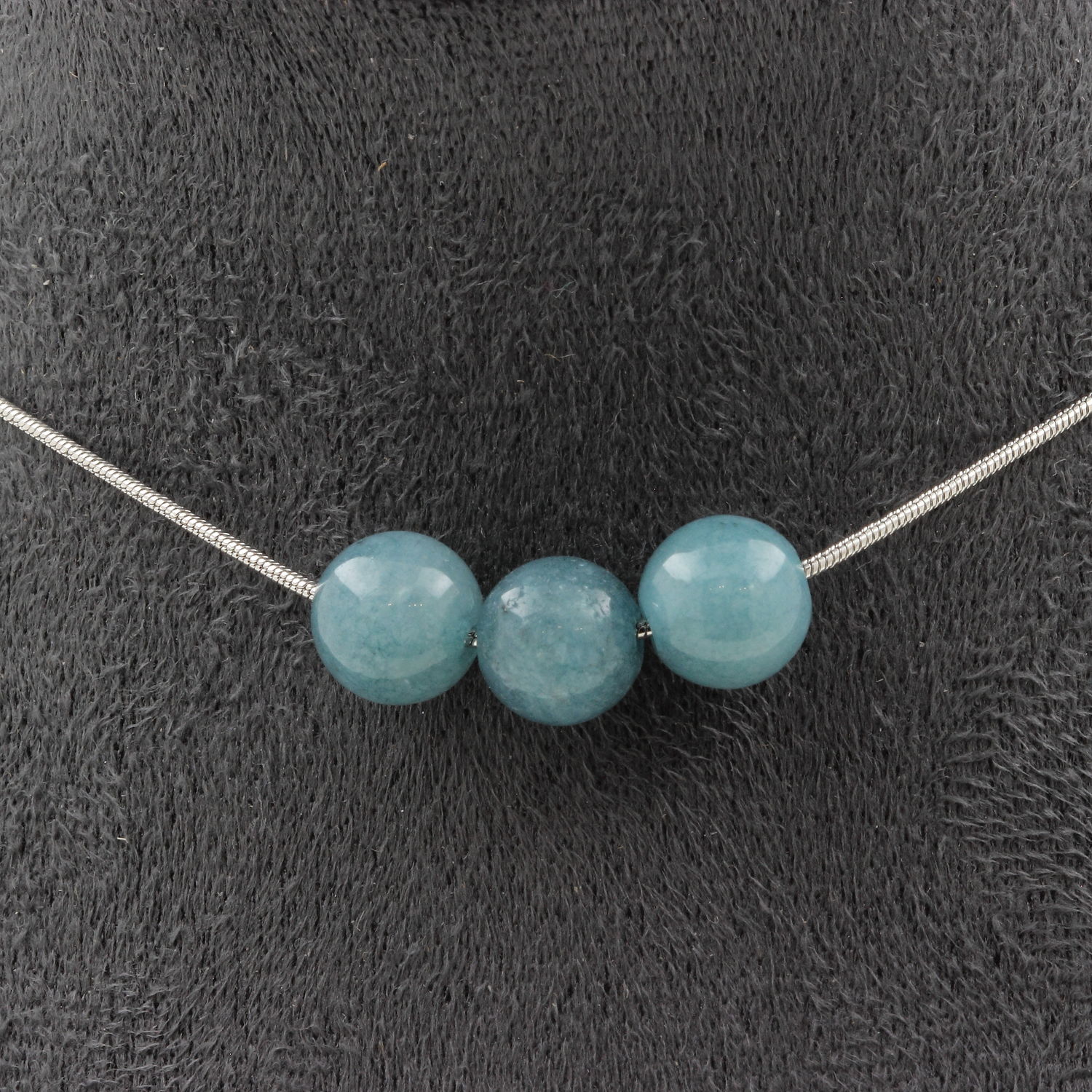 Akvamarínový náhrdelník s 3 korálkami 8 mm