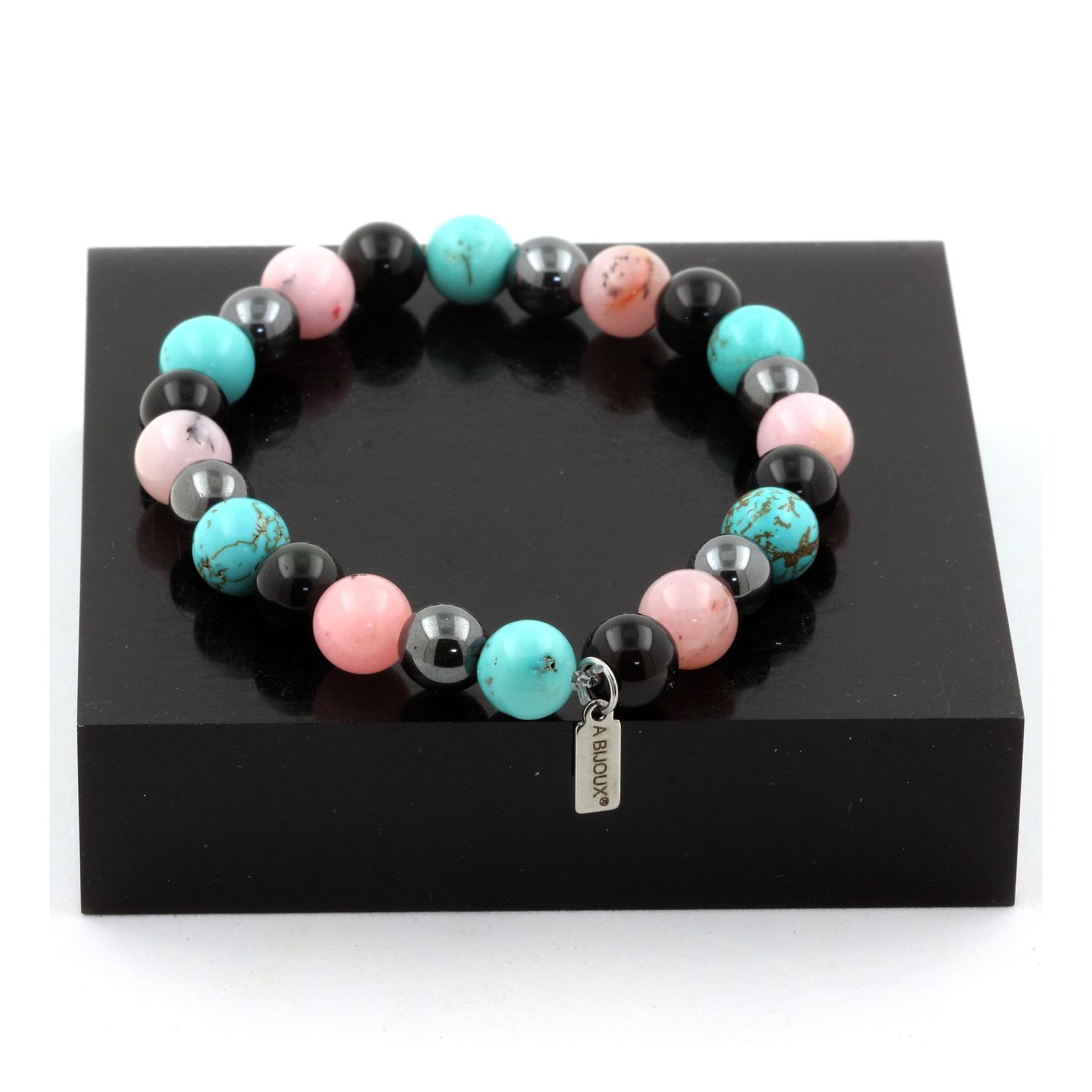 Čierny obsidián, hematit, ružový opál, tyrkysové korálky na náramok