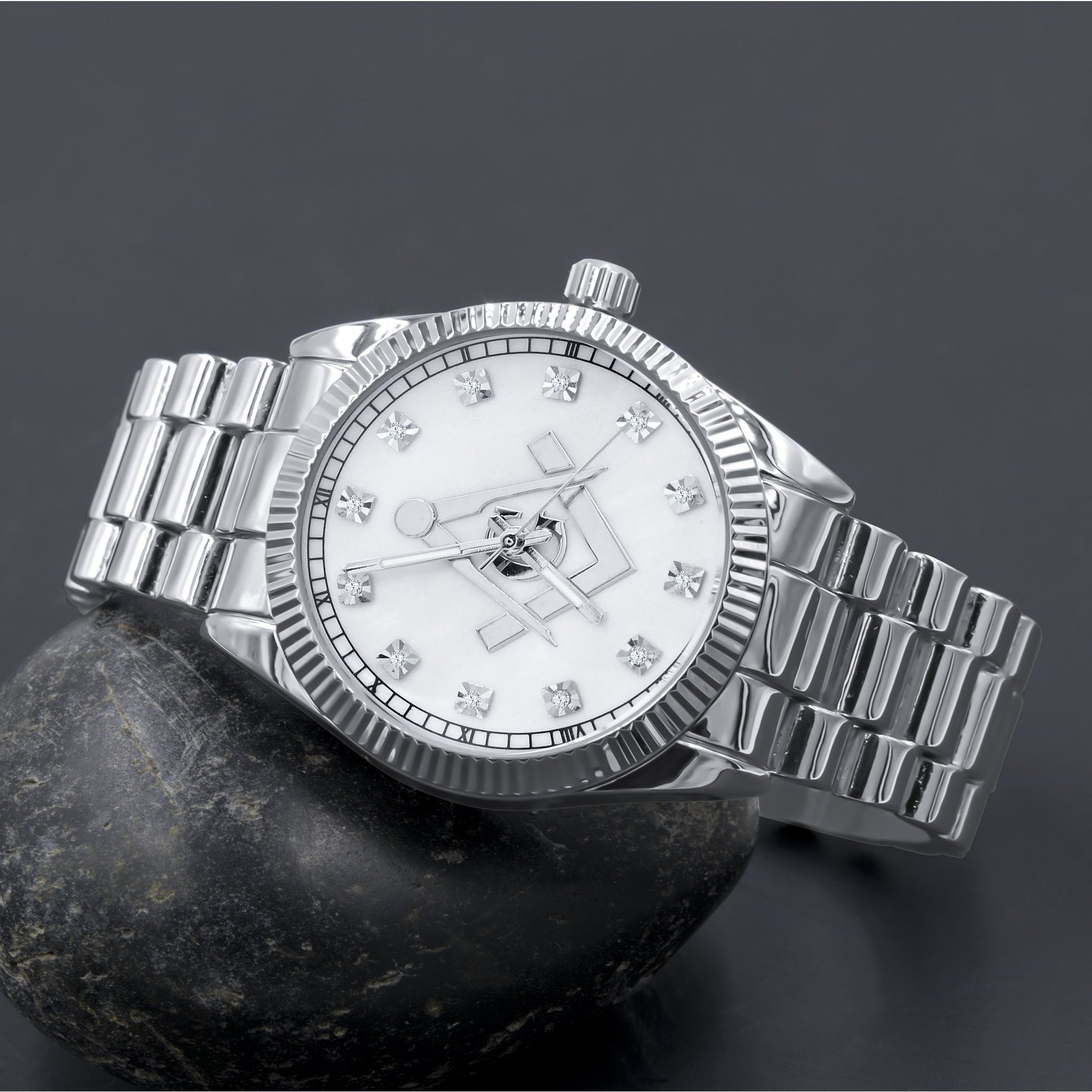 Plne lesklý kov, hodinky s CZ na lunete, japonský strojček, japonská batéria, oceľový zadný kryt, 100 % nastaviteľné články, konštrukcia z pevnej zliatiny, hrúbka puzdra cca 11 – 13 mm, priemer puzdra cca 41 – 45 mm, balené v samostatnom polyetylénovom vrecku.