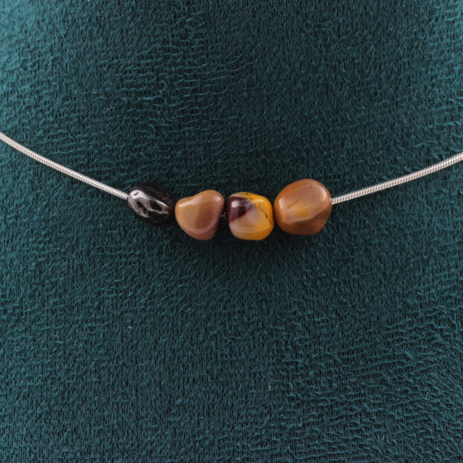 Pozdvihnite svoj štýl s naším úžasným náhrdelníkom Mookaite! Tento jedinečný kúsok obsahuje štyri krásne 8 mm korálky, z ktorých každá predstavuje živé farby austrálskeho mookaitu. Retiazka z nehrdzavejúcej ocele meria príjemných 45 cm, ideálna na každodenné nosenie alebo špeciálne príležitosti.