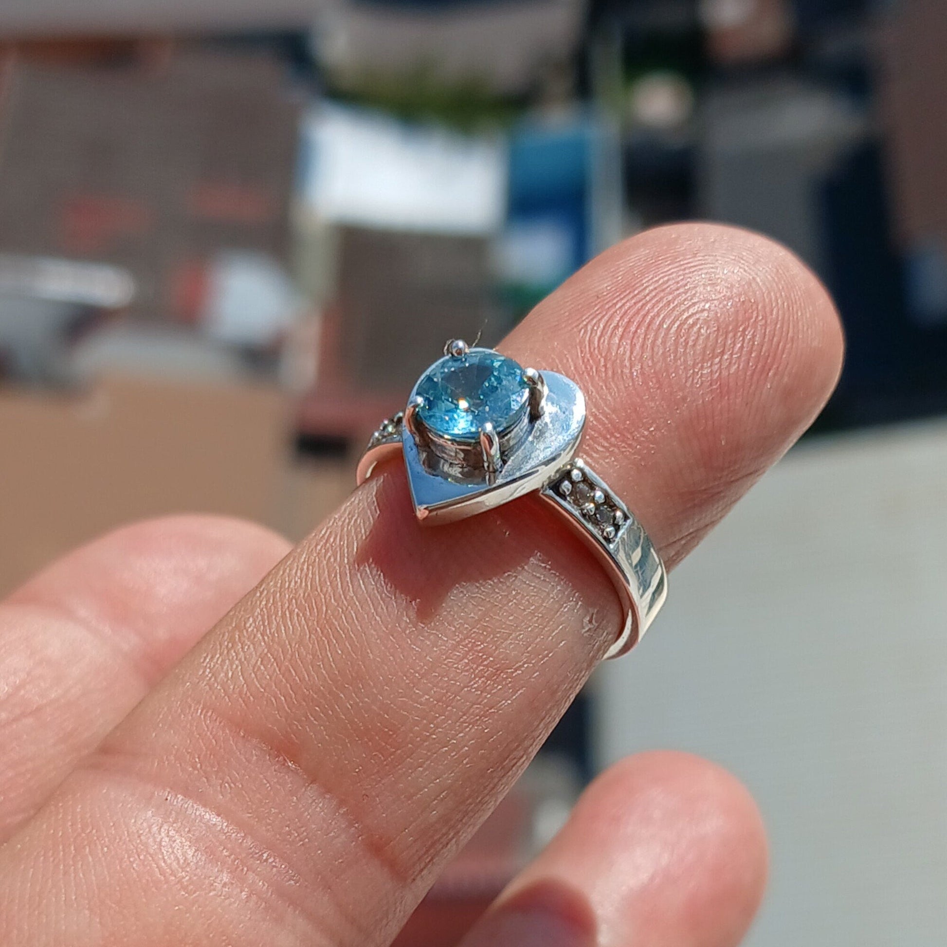 Strieborný prsteň s prírodným modrým zirkónom, zirkónový prsteň v tvare srdca