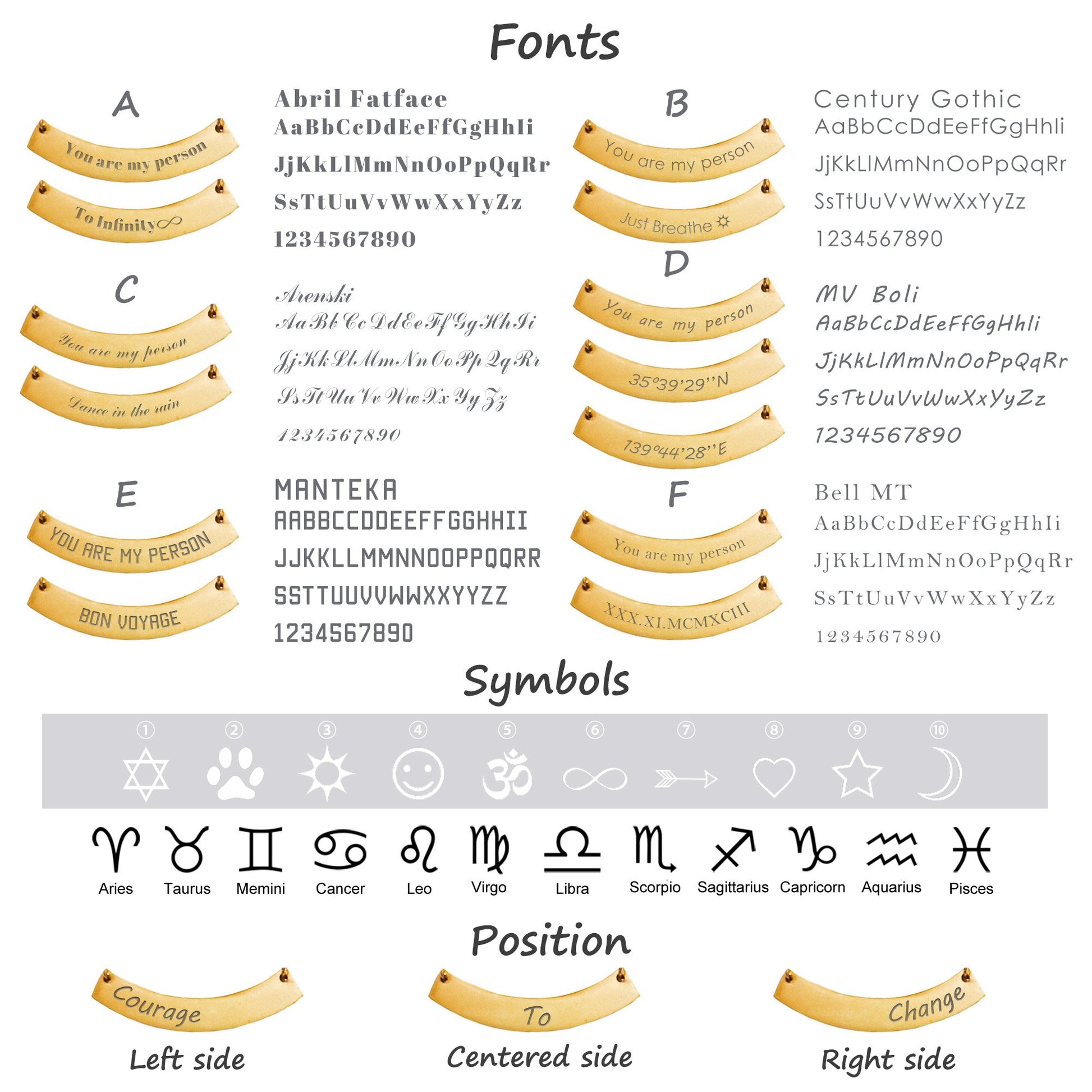 - Gravírovanie krátkych správ vľavo / v strede / vpravo.