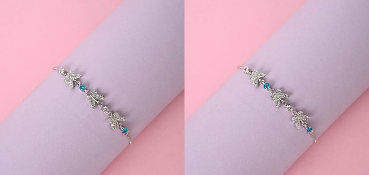 Nastaviteľný náramok na ruku s motýľom v striebornom modrom prevedení, balenie 2 kusov
