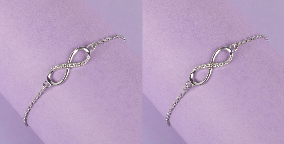 Strieborný náramok Infinity, nastaviteľný, ródiovaný, BALENIE 2 KS
