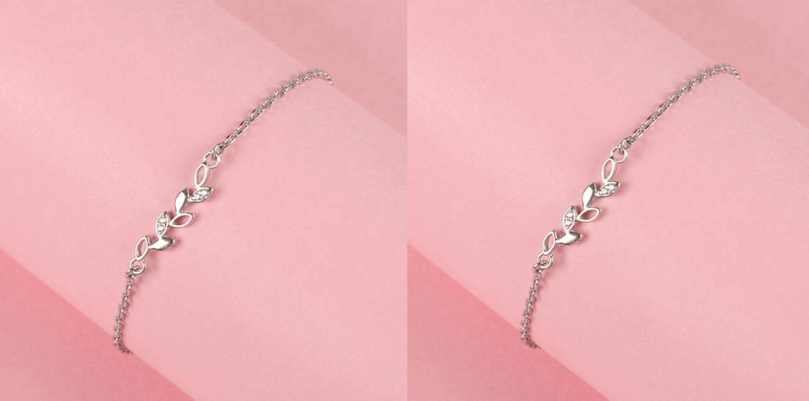 Nastaviteľný náramok zo striebra s listami, ródiovaný, BALENIE 2 KS