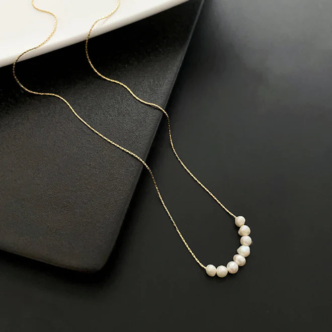 Tento vrstvený náhrdelník má 2 vrstvy, kratšia má korálkové umelé perly a dlhšia má prívesok s nápisom „Rob, čo miluješ“.