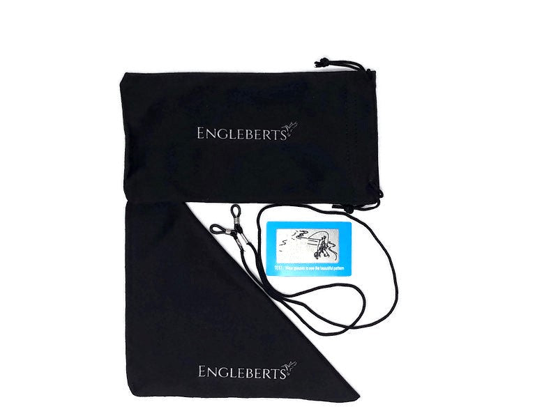 - Hodnota: Každý pár okuliarov Engleberts sa dodáva s mäkkým mikrovláknovým puzdrom, čistiacou handričkou z mikrovlákna a remienkami na slnečné okuliare.